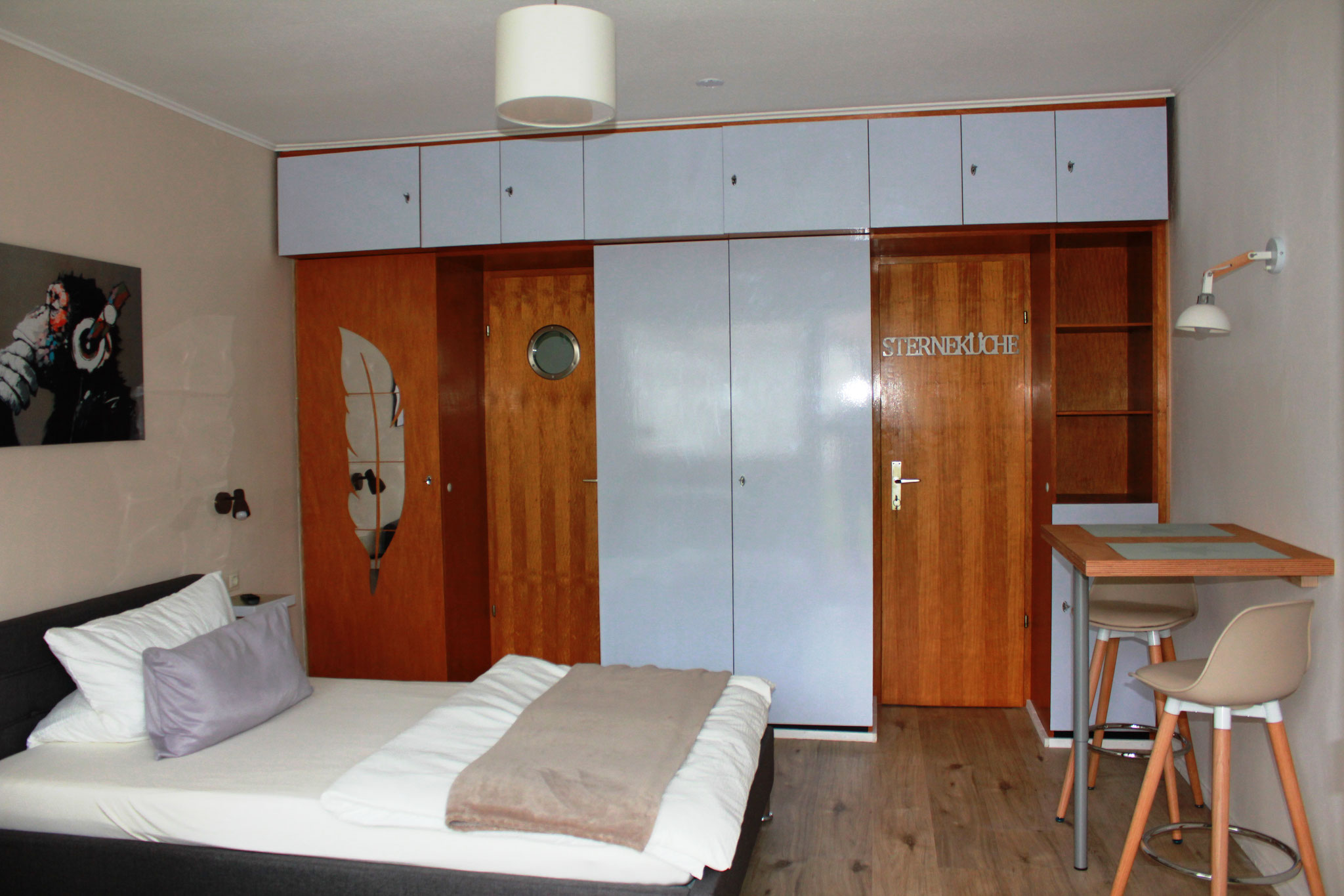 Dieses Appartement hat eine Größe von ca. 23 m². Komfortabel und gemütlich ausgestattet. Es verfügt über einen Wohnraum, eine Küche und einem Bad. Der Wohnraum ist in Essbereich, Schlafbereich, Büro und Garderobe eingeteilt und zweckmäßig ausgestattet. Das Bett ist ein Komfort-Bett 120x200 cm. Die Küche ist ebenfalls voll ausgestattet und zum Zubereiten kleinerer Gerichte ideal. Das gemütliche Bad verfügt über eine Dusche, ein WC und lädt zum frisch machen ein.